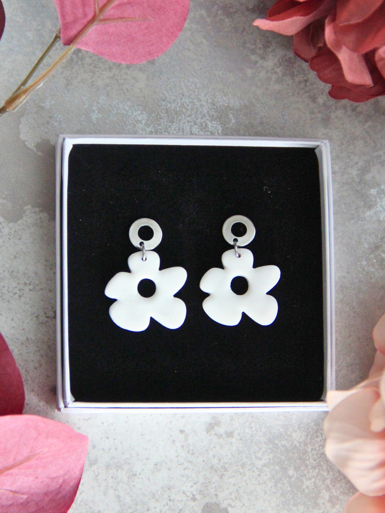 Peiliakryyli ei kestä kemiallisia puhdistusaineita, eikä hajuvettä tai hiuslakkaa. Laitathan korvikset aina viimeisenä korvaan. Pintaa voit pyyhkiä kevyesti pehmeällä liinalla. Peilipinta on myös helppo naarmuuntumaan, joten säilytäthän korut aina korurasiassa. Huomioithan, että peiliakryylin tausta on harmaa, eli peilaava pinta on vain tuotteen etupuolella.