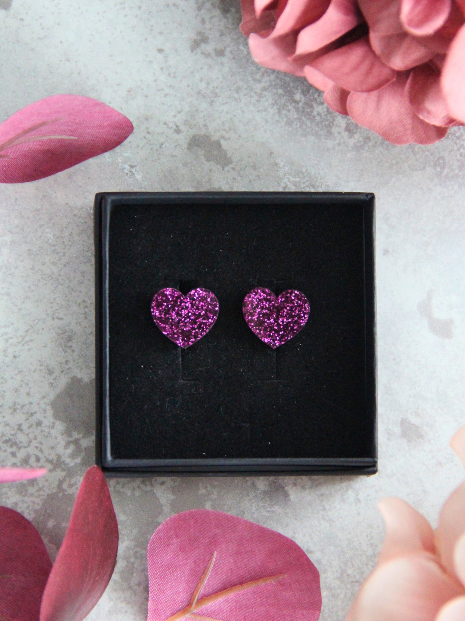 Nämä upeat Lovely -korvakorut on valmistettu glitterakryylistä. Valitse pirteä pinkki tai syvä violetti. Molemmissa kimaltelee erivärisiä glittereitä. Nämä sopivat loistavasti kesän menoihin 🩷
