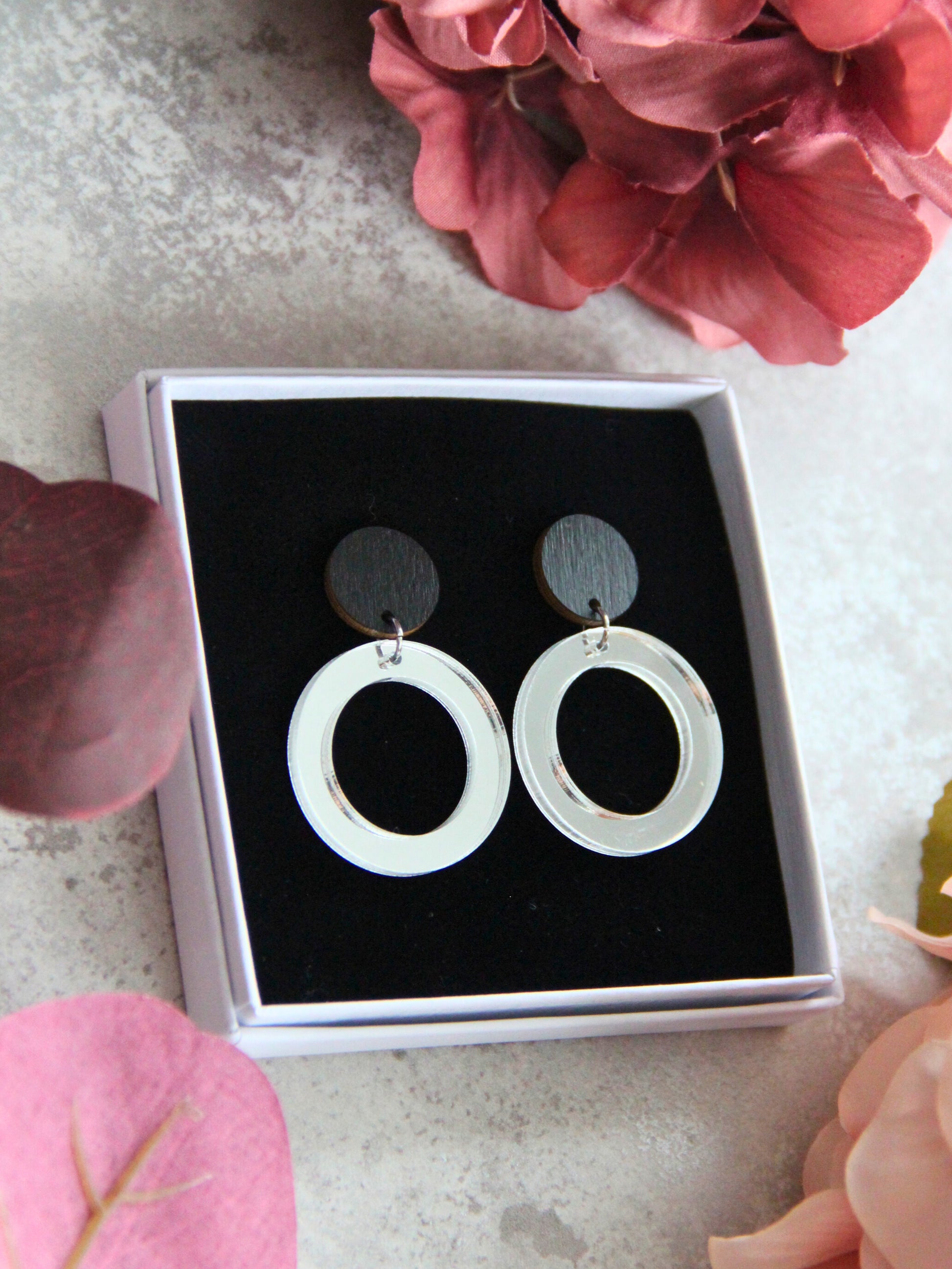 Fabulous Rings -korvikset ylläsi tunnet itsesi upeaksi. Nämä sähäkät korvikset sopivat täydellisesti juhla-aikaan. Peiliakryyli yhdistettynä mustaksi maalattuun koivuvaneriin luovat leikkisän yhdistelmän.
