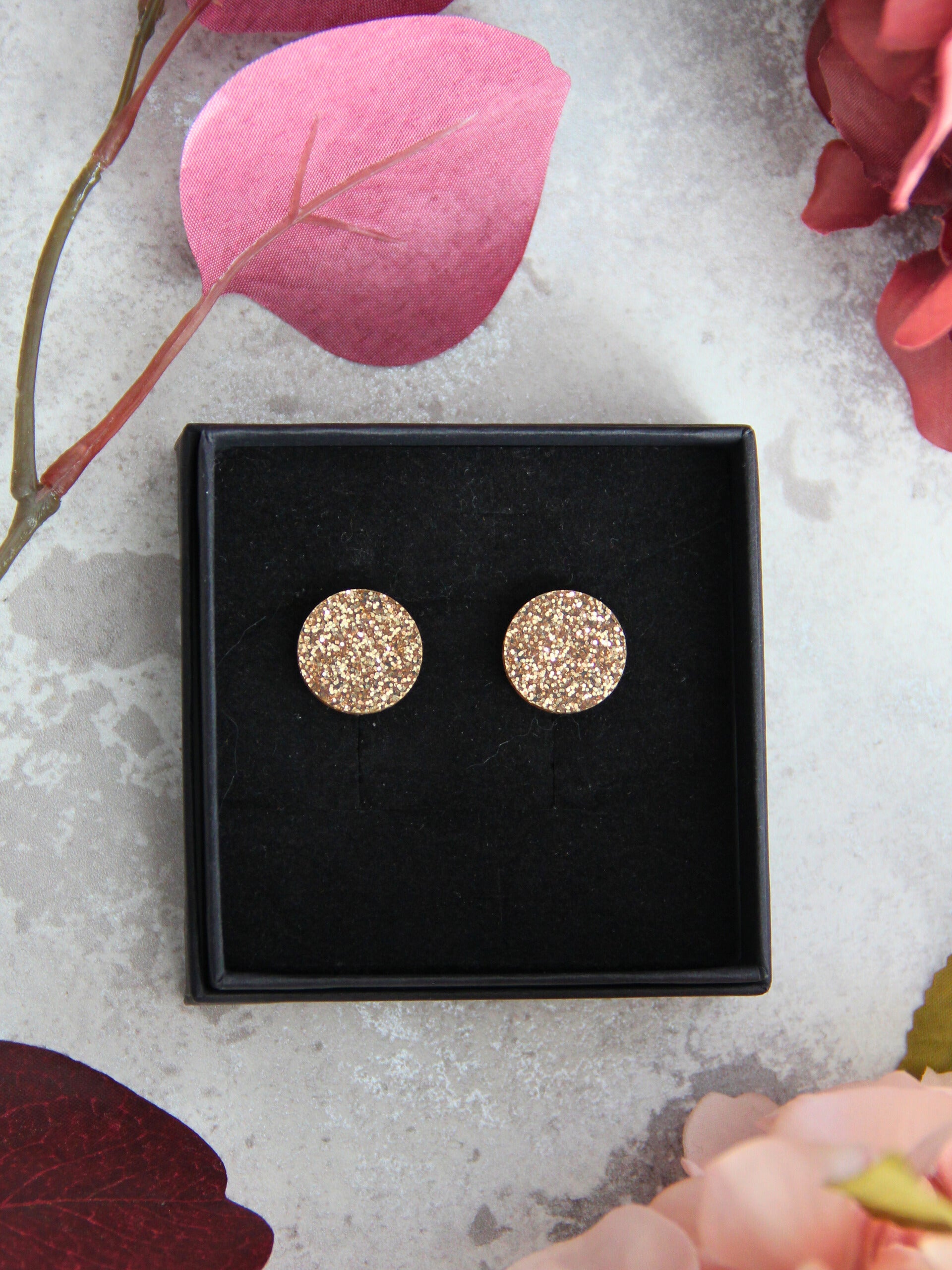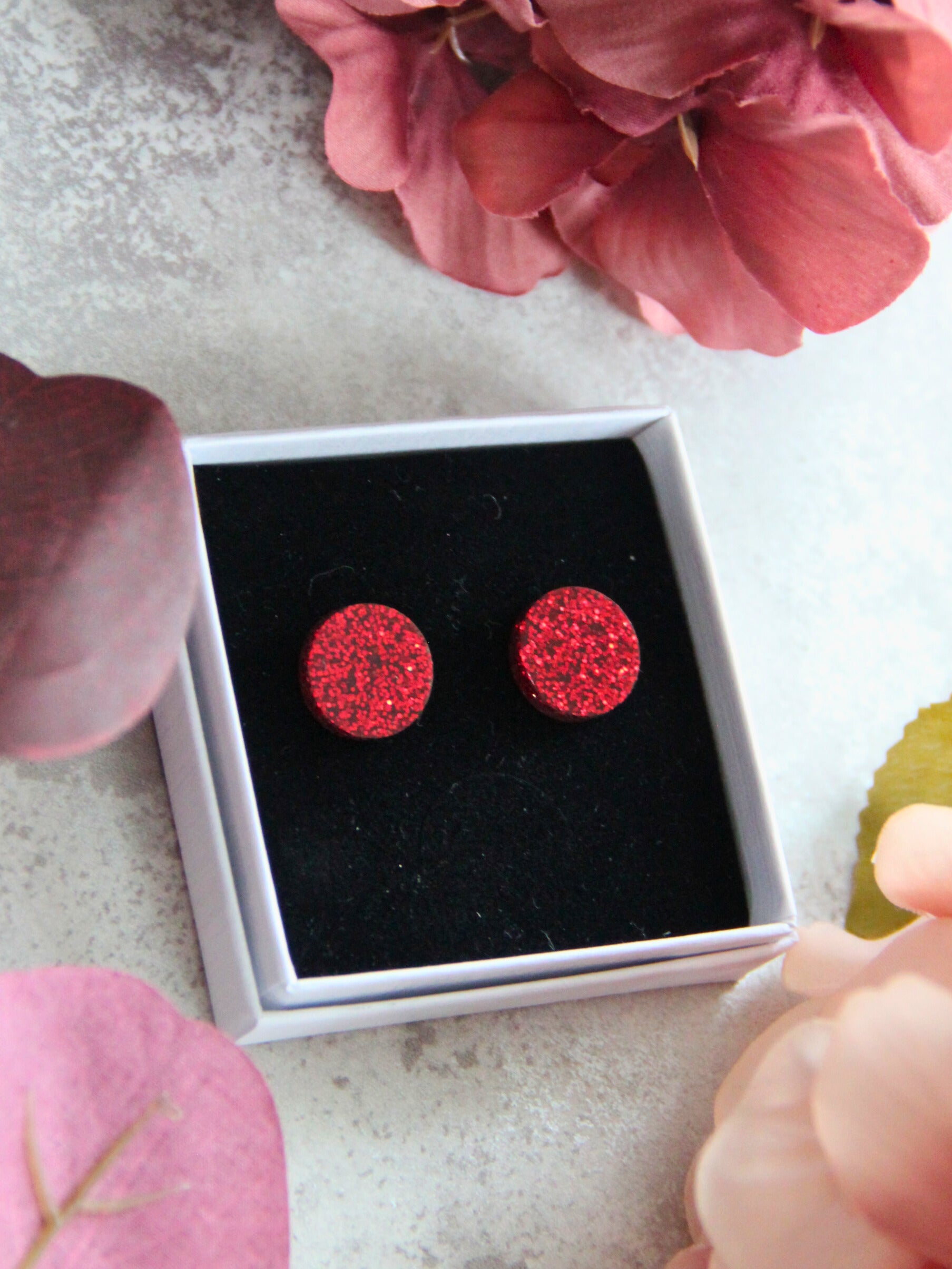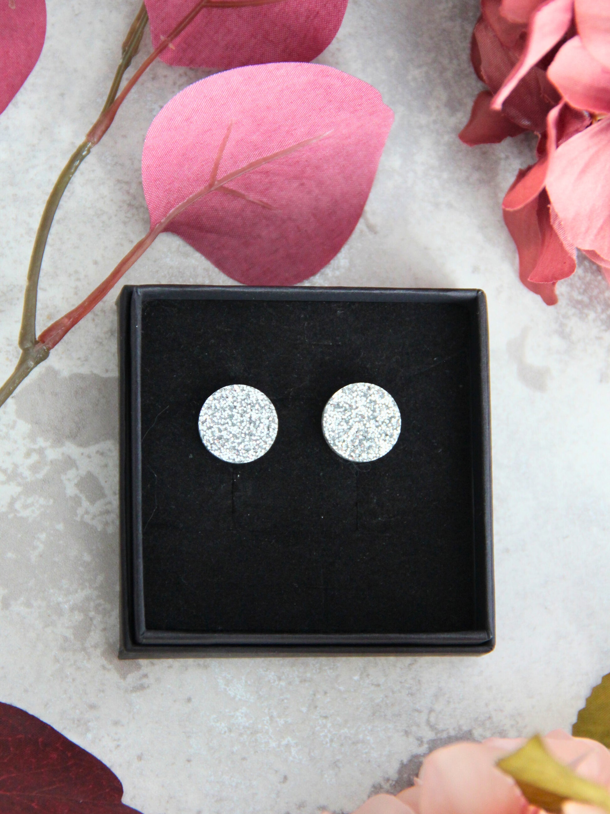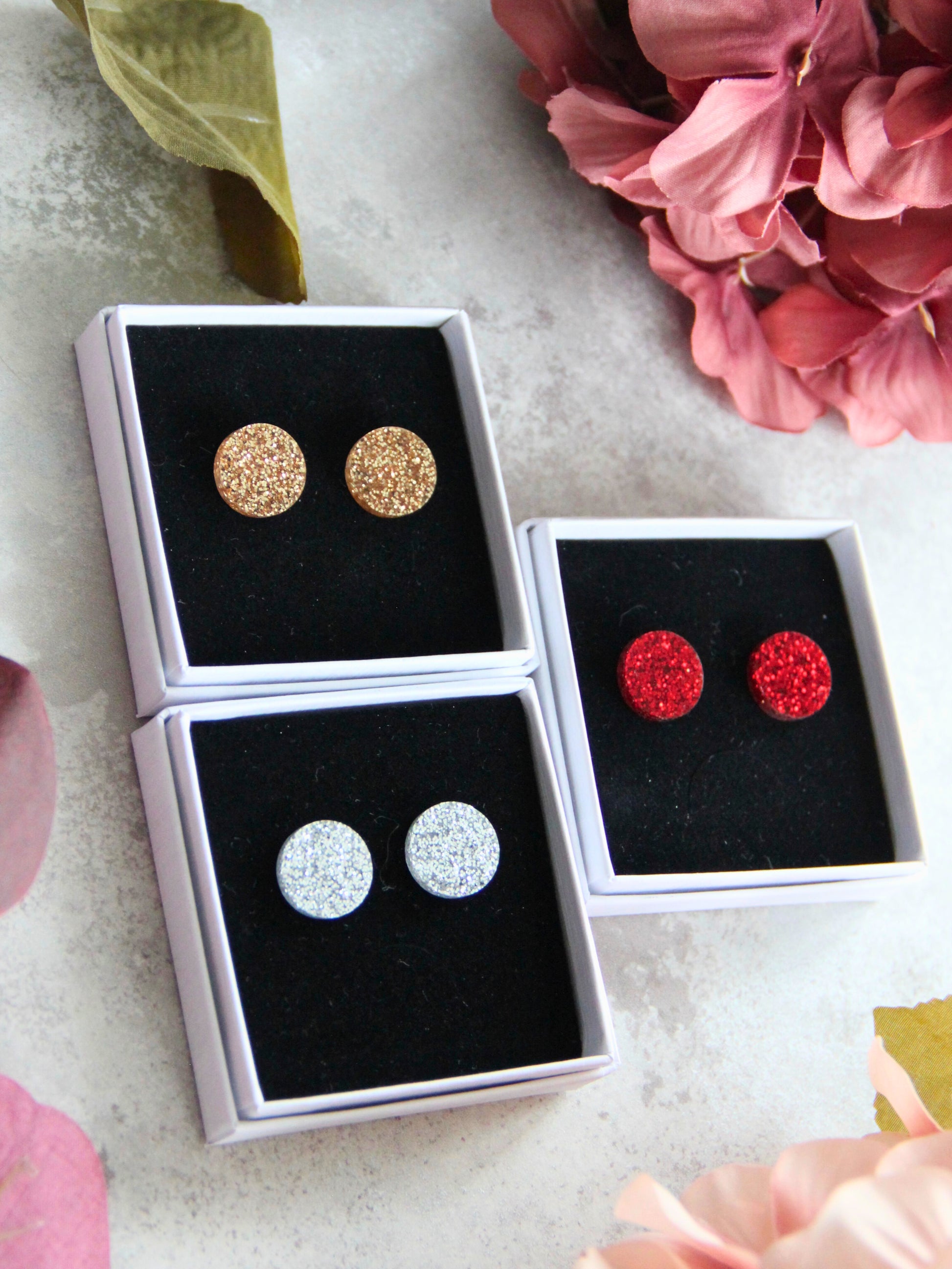 Glitter-nappikorvikset sopivat täydellisesti juhla-aikaan. Nämä kimaltelevat korvikset säihkyvät kauniisti valon osuessa niihin.