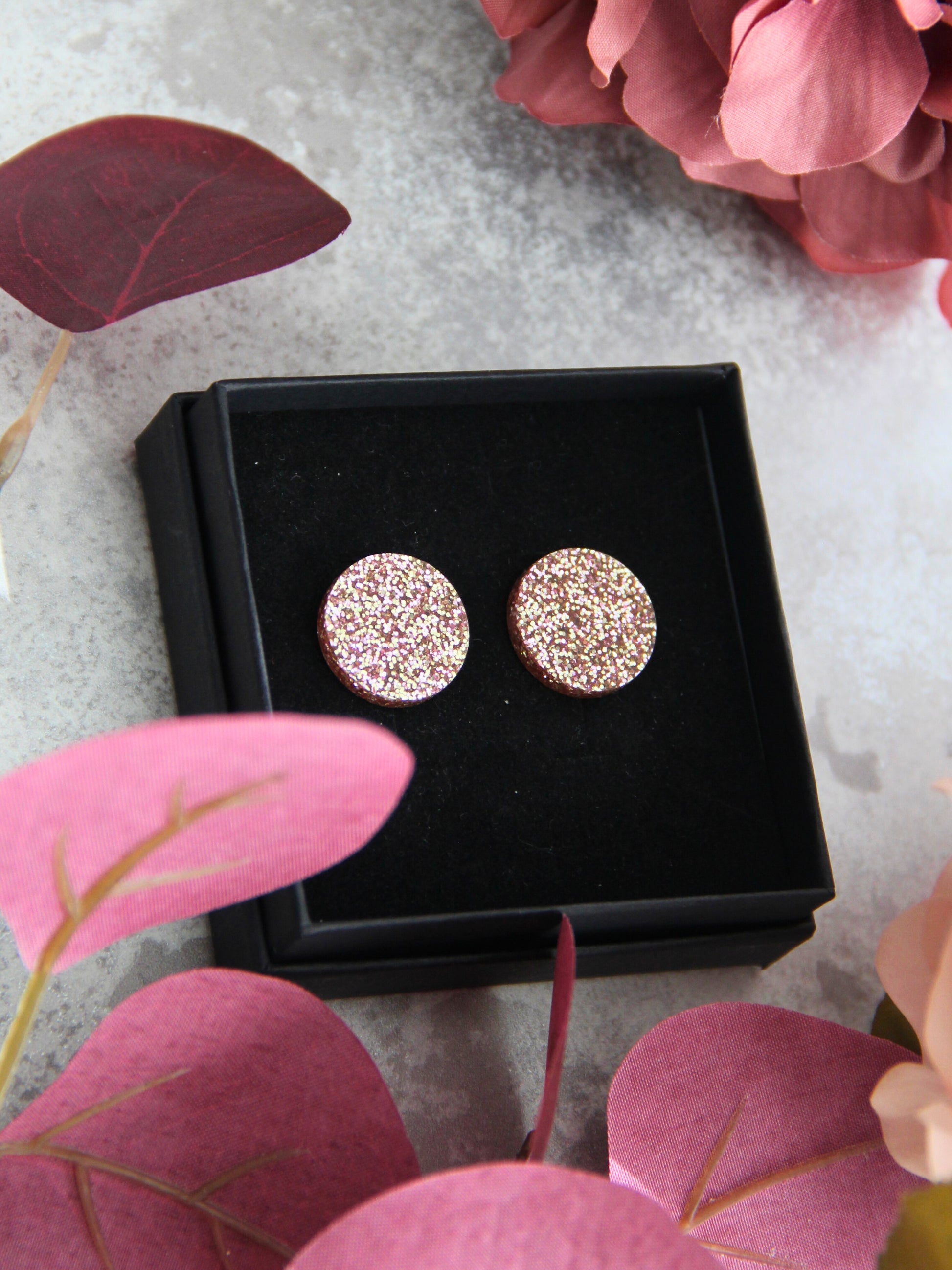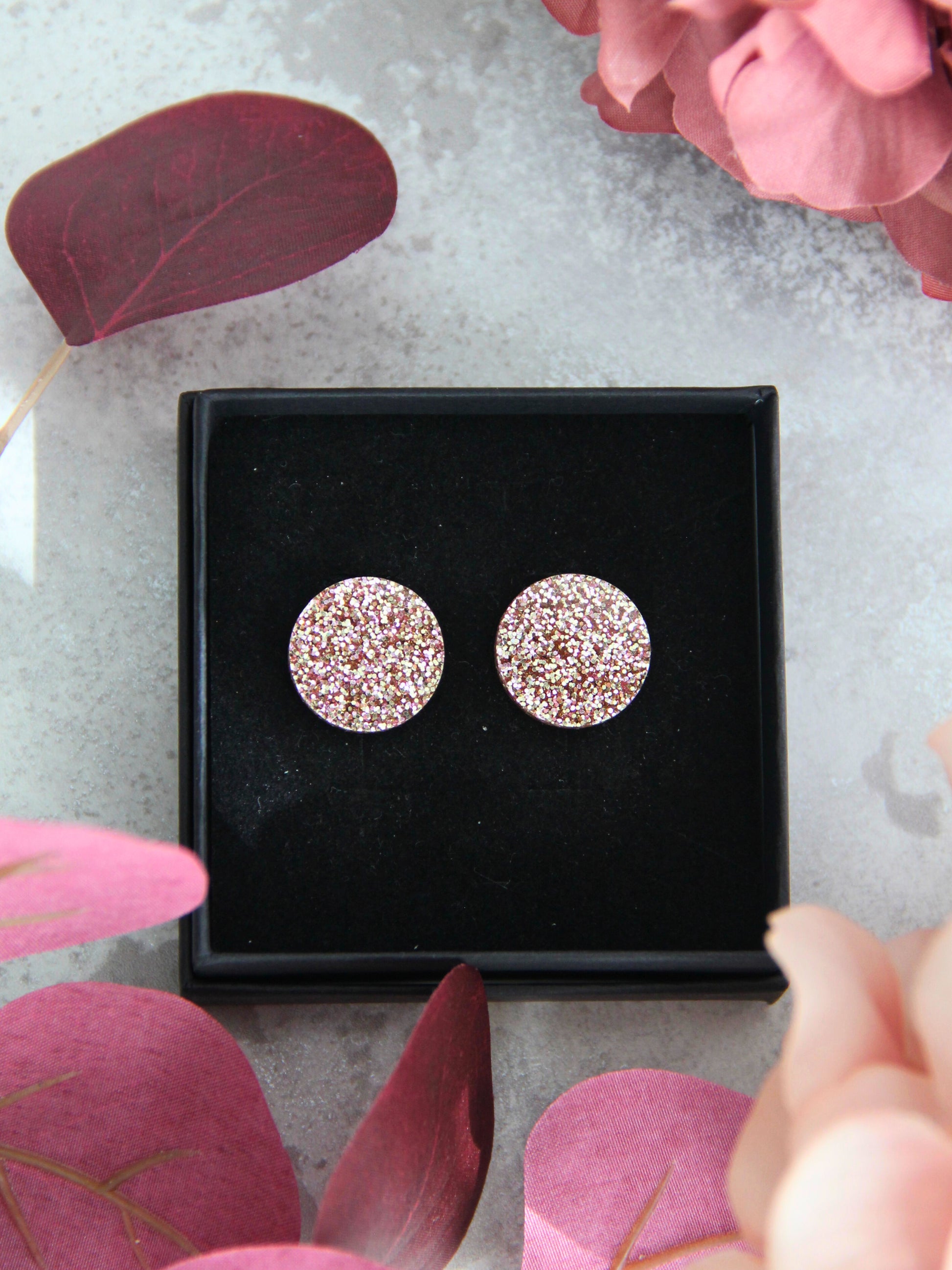 Glorious big -nappikorvikset ovat upeat ja säihkyvät nappikorvikset. Näissä korviksissa säihkyy ruusukultainen glitter ja ne sopivat täydellisesti kesän juhliin.