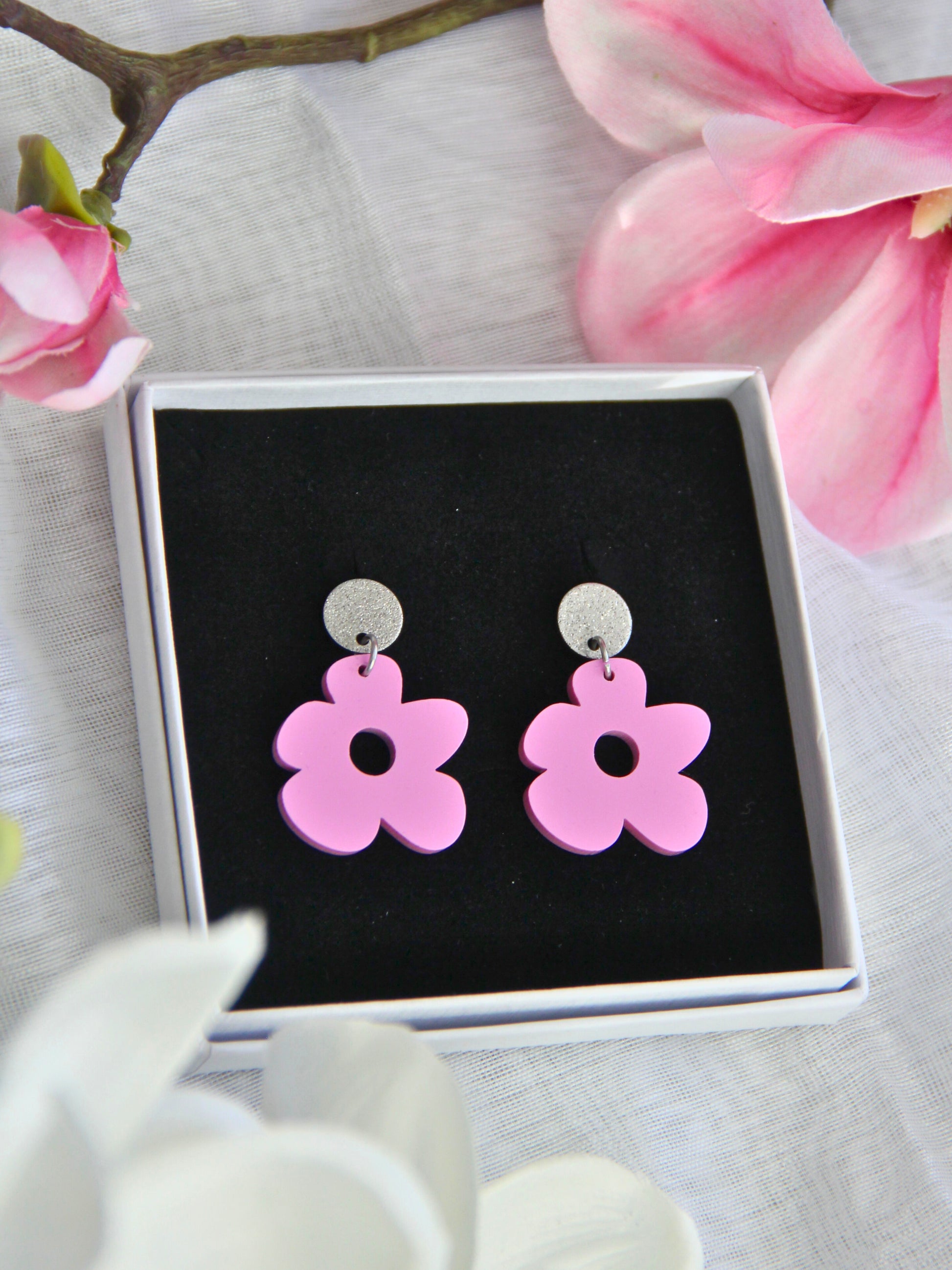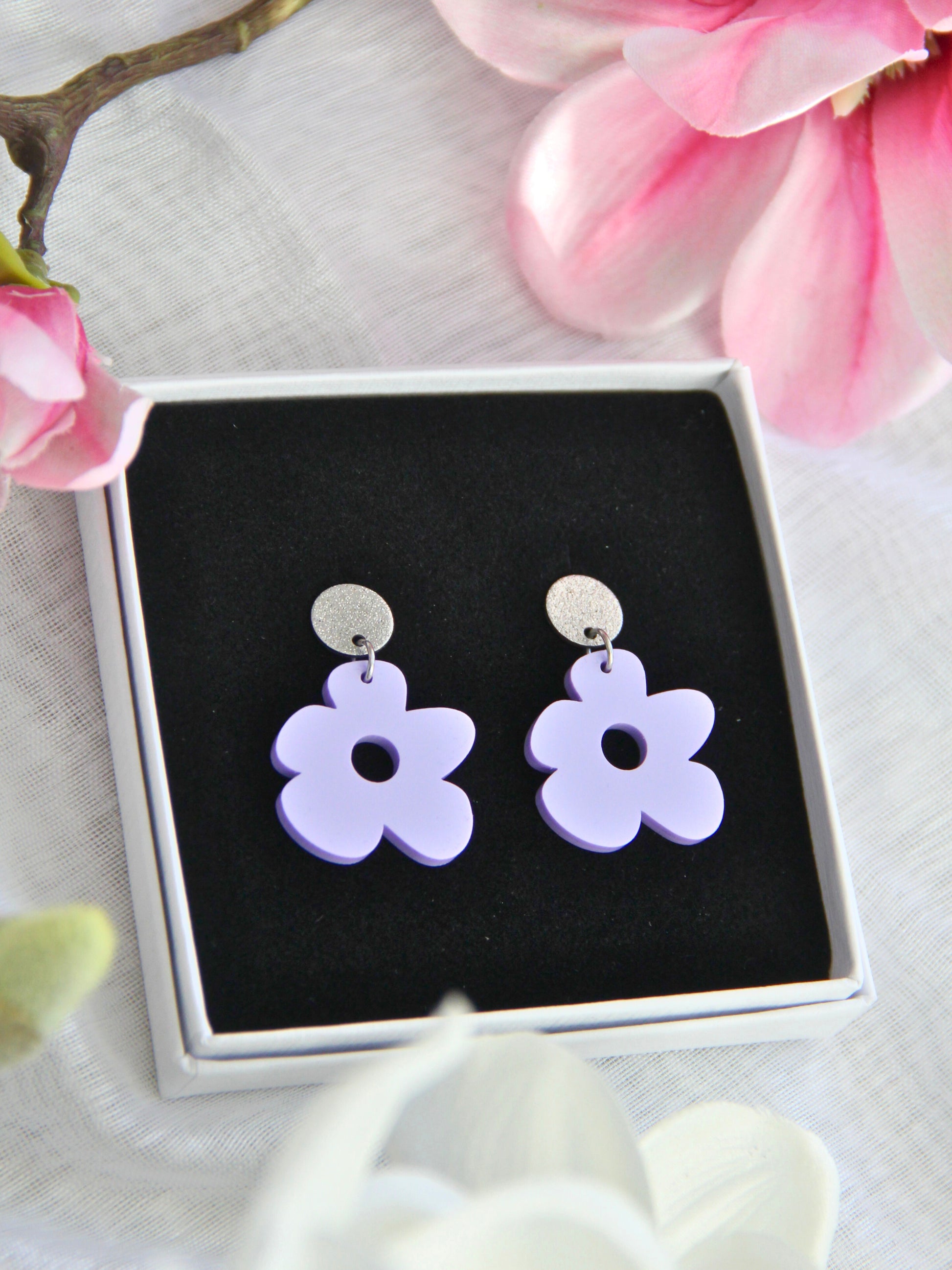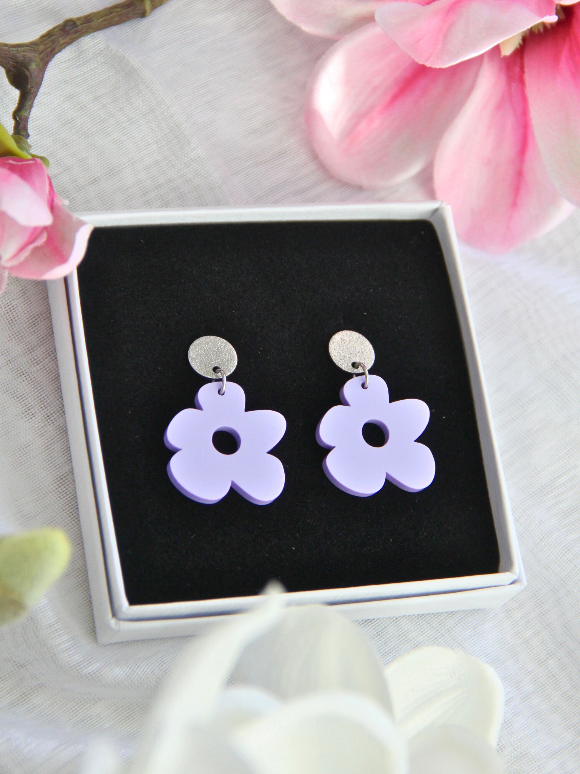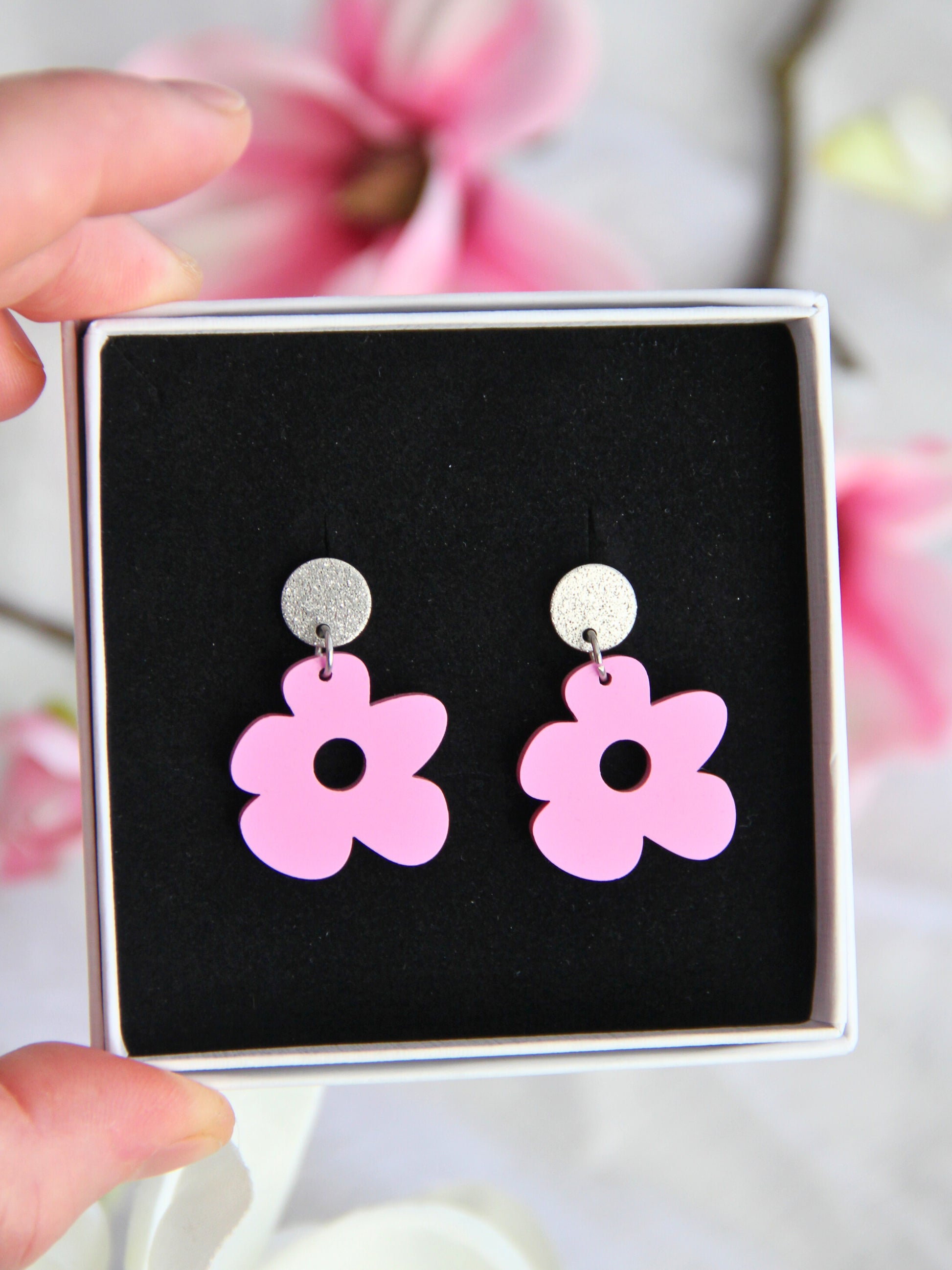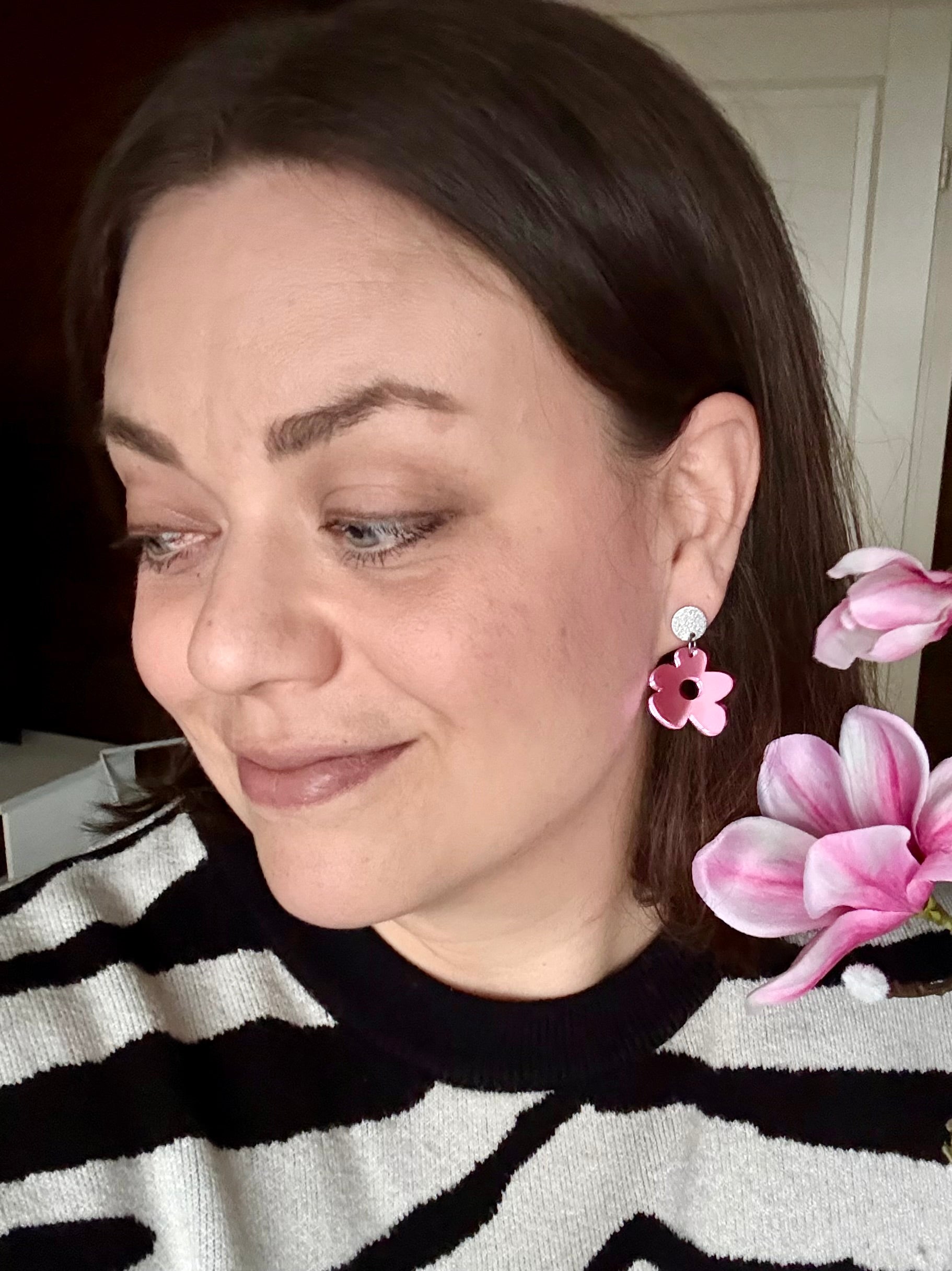 Tutut Pihlaja-korvikset kietoutuivat keväiseen kuosiin ja niitä on saatavilla nyt raikkaissa pastellinsävyissä. Korun kruunaa kimalteleva nappiosa.