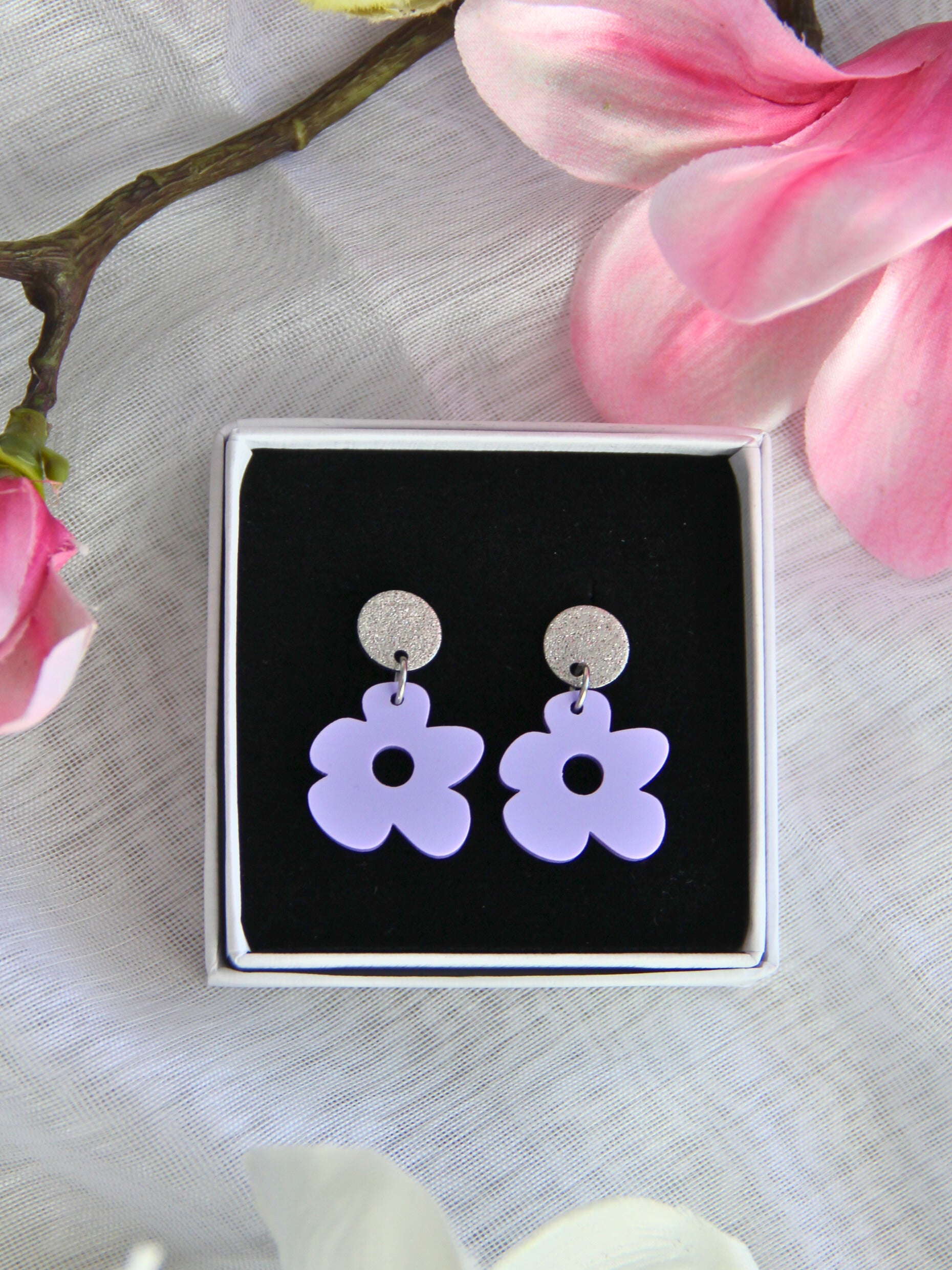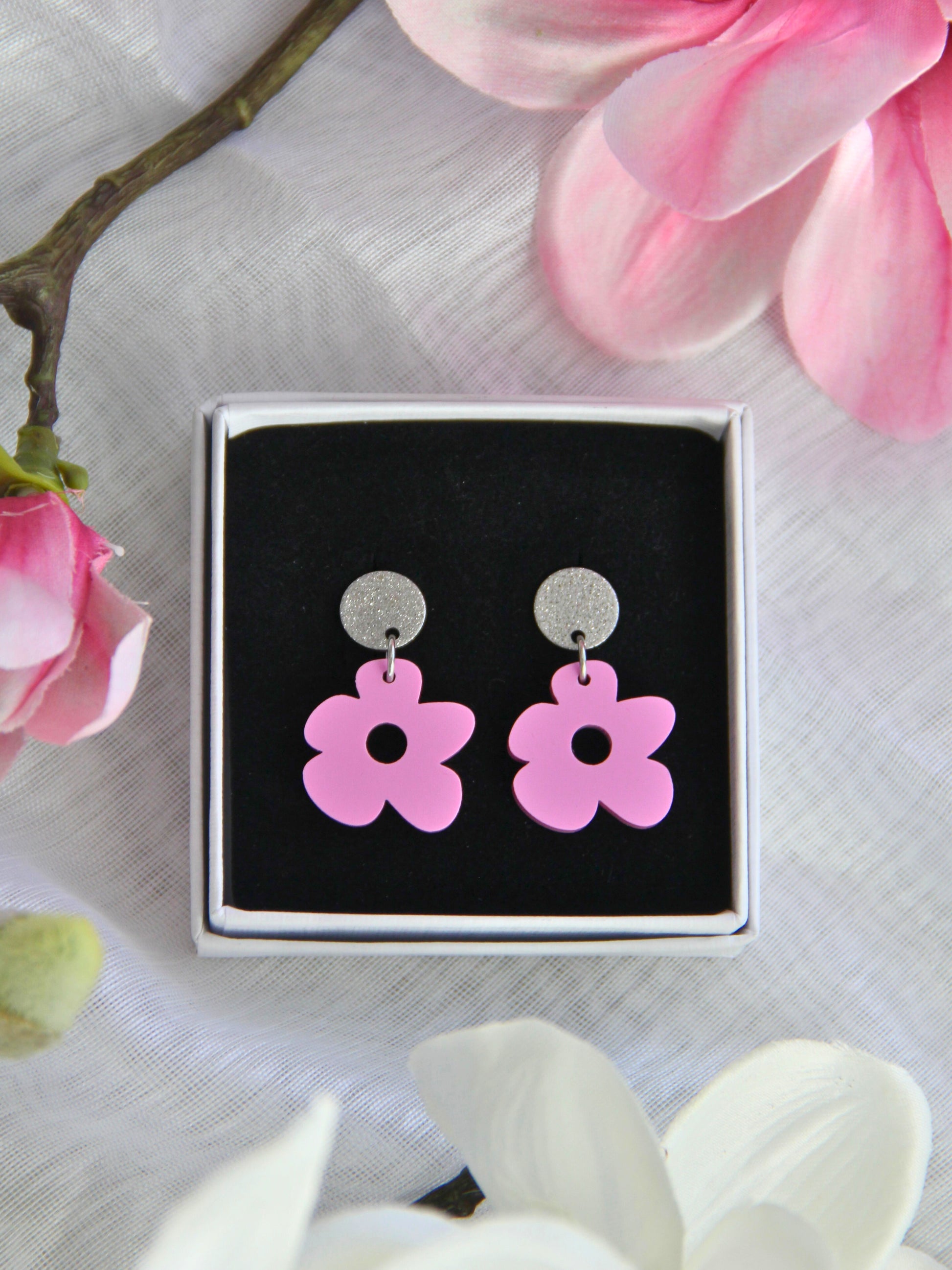 Tutut Pihlaja-korvikset saatavilla keväisissä pastellinsävyissä. Korun kruunaa upea kimalteleva nappiosa.